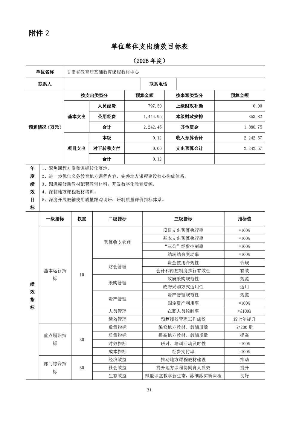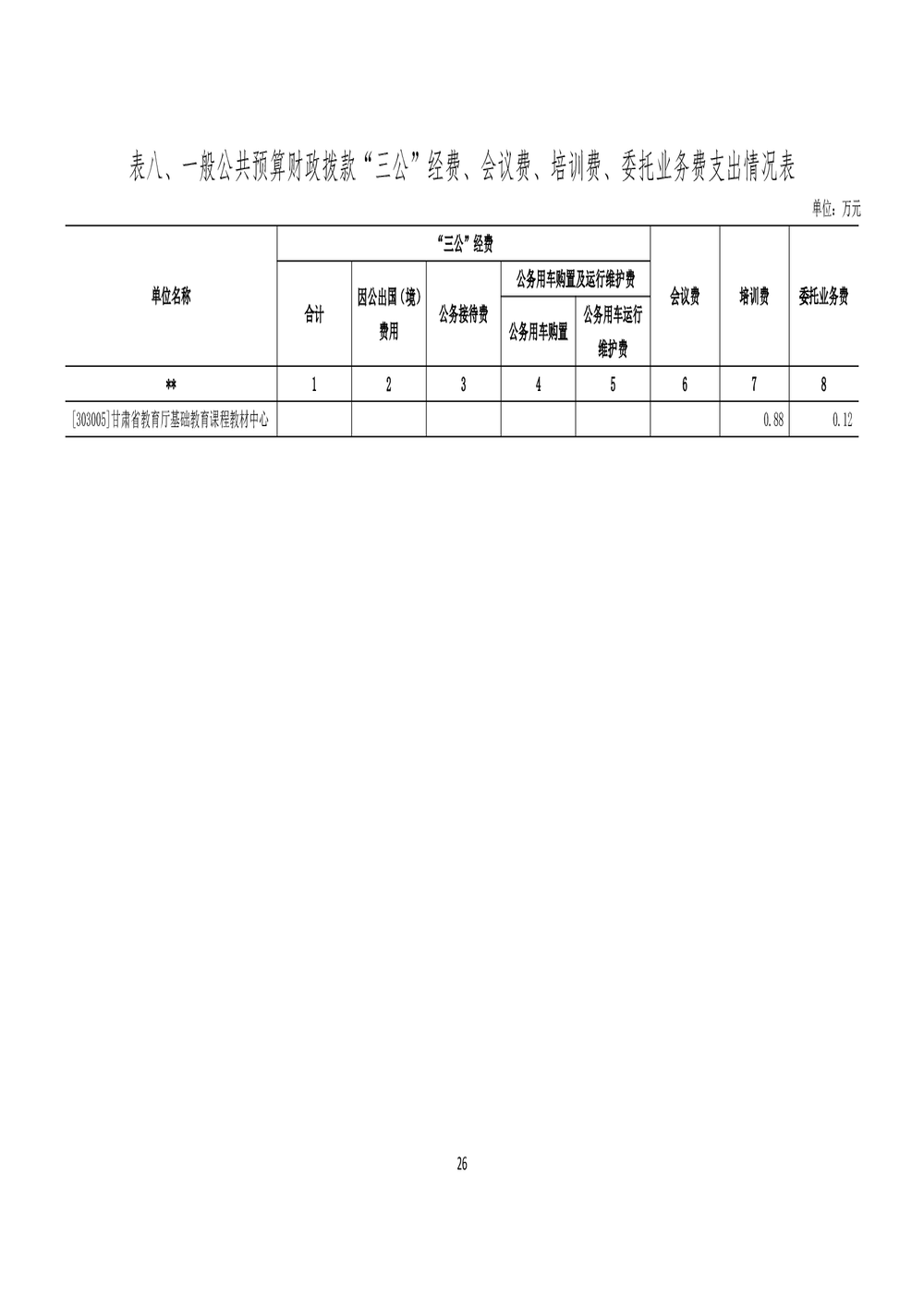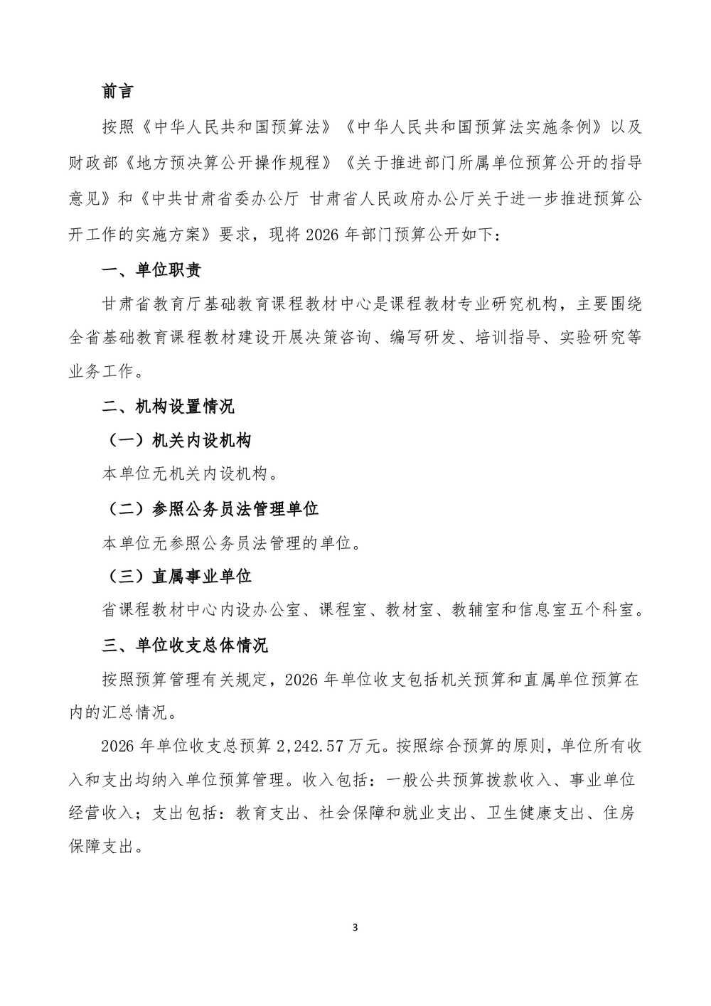 甘肃省教育厅基础教育课程教材中心2026年单位预算公开情况说明