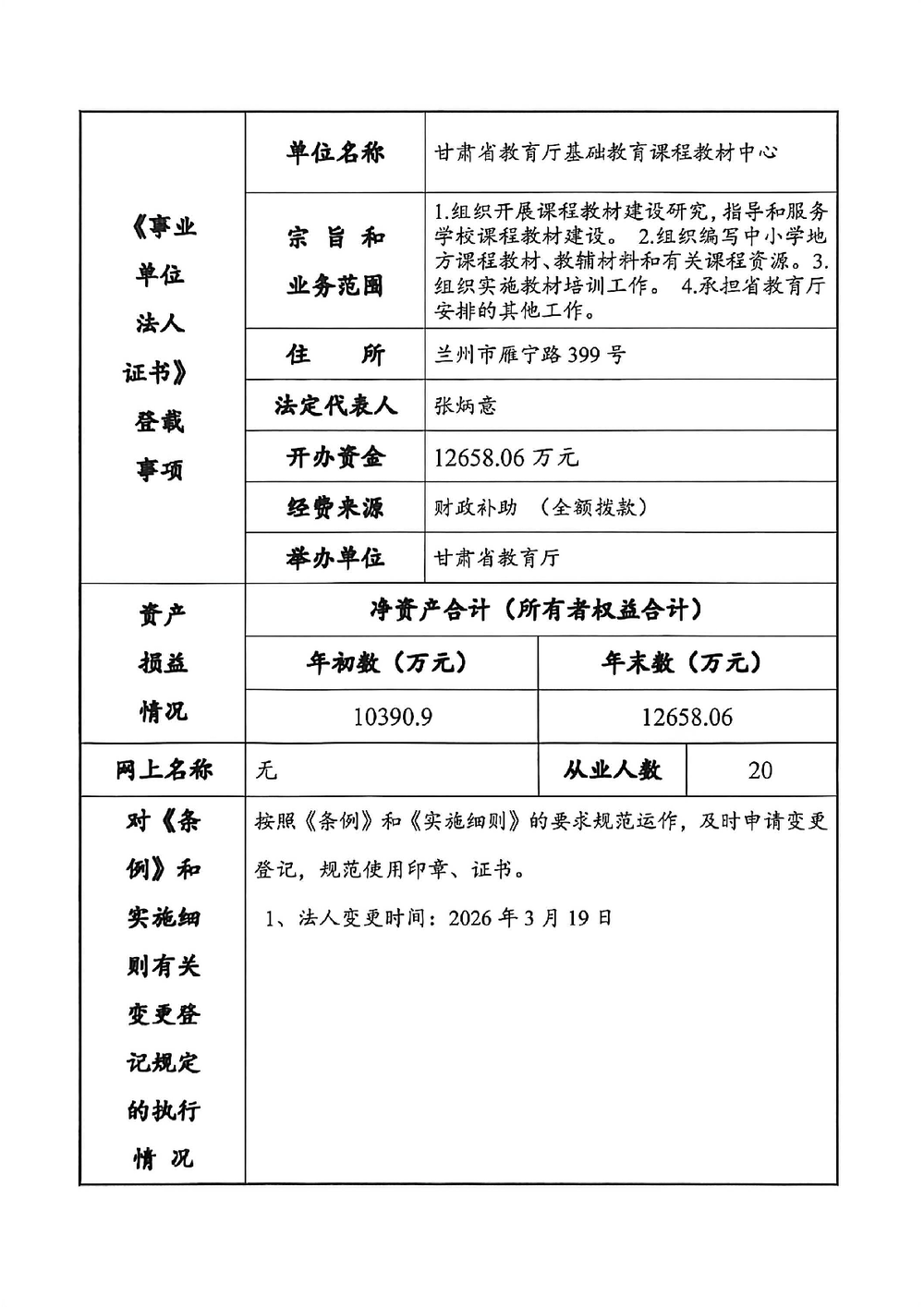 甘肃省教育厅基础教育课程教材中心2026年单位预算公开情况说明