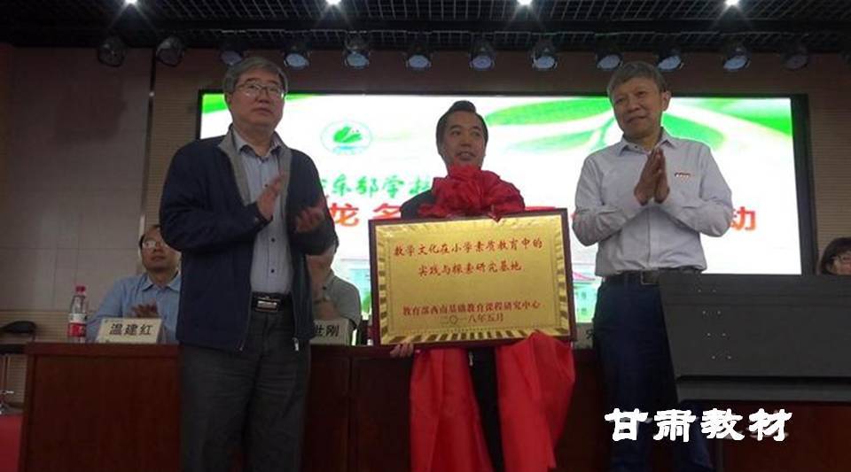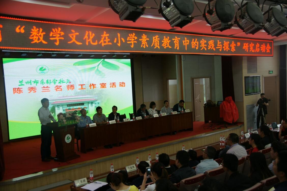 为推进数学文化在小学素质教育的实践研究、深化数学课程改革、提高学生数学素养,甘肃省数学文化在小学素质教育中的实践与探索研究启动会于5月21在兰州召开,会议由甘肃省教育厅基础教育课程教材中心和教育部西南基础教育课程研究中心主办,兰州市东郊学校陈秀兰名师工作室、甘肃省数学教育研究会、兰州市教科所、临洮县教育局教研室共同承办。来自全省部分市、县(区)的教育行政部门、教科研部门的领导,18所实验学校参研教师,部分数学名师工作室教师、市(县)教研员及兰州市名师大讲堂教师共计200多人参加了会议。省教育厅副厅长、甘肃省基础教育课程教材专家工作委员会主任赵凯出席会议并同教育部西南基础教育课程研究中心主任、教育部基础教育课程教材专家工作委员会副主任宋乃庆教授共同揭牌,授予甘肃省教育厅基础教育课程教材中心为“数学文化在小学素质教育中的实践与探索研究基地”,省课程教材中心主任李博接牌并致辞,会议由省课程教材中心副主任魏和平主持。