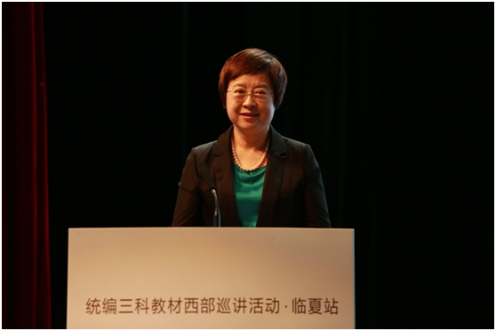 王海燕指出,甘肃省教育厅高度重视统编三科教材的使用工作,严格按照教育部的规划要求,整体推进全省三科教材的使用。全方位提高教师的课程执行力,使国家统编教材的政治方向、价值导向和编写思想落到实处,见到实效。