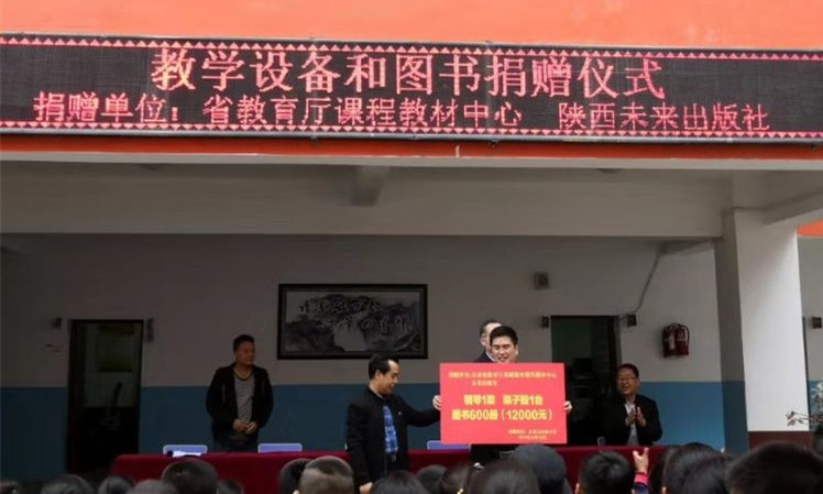 随后前往口头坝小学参加了教学设备和图书捐赠仪式。为改善口头坝小学美育教学条件,加大对乡村学生的艺术熏陶力度,省教育厅基础课程教材中心和陕西未来出版社一道向口头坝小学捐赠钢琴一架、架子鼓一个以及价值1.2万元的图书600册。