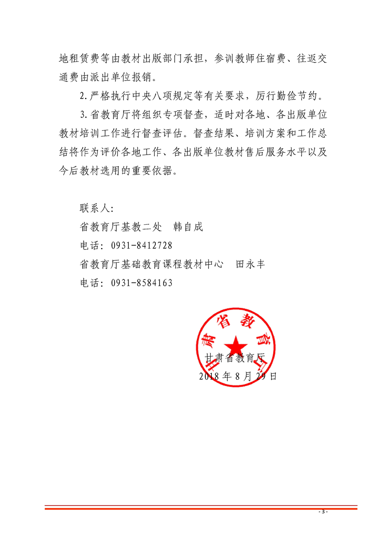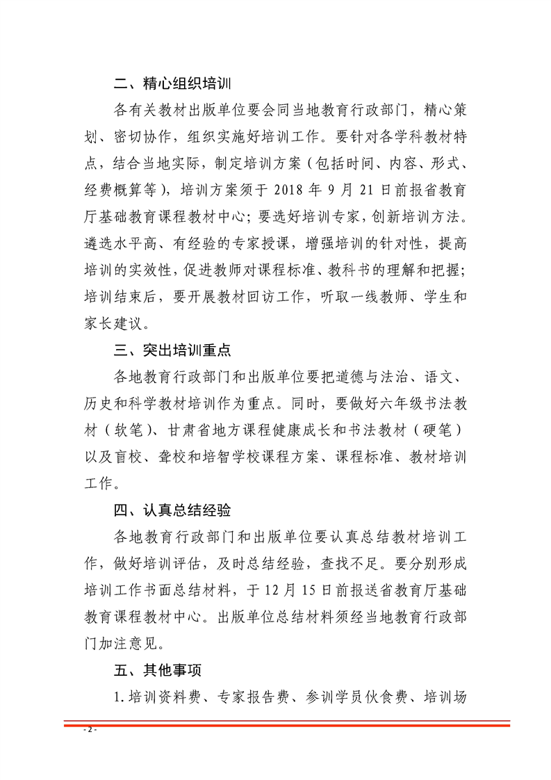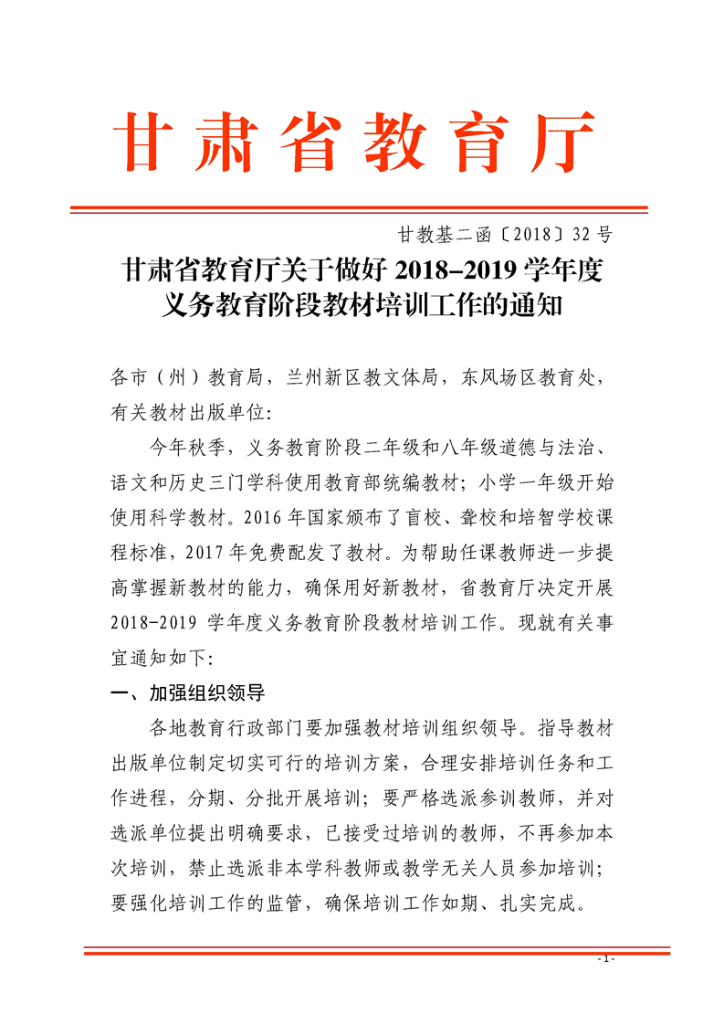 甘肃省教育厅关于做好2018-2019学年度义务教育阶段教材培训工作的通知