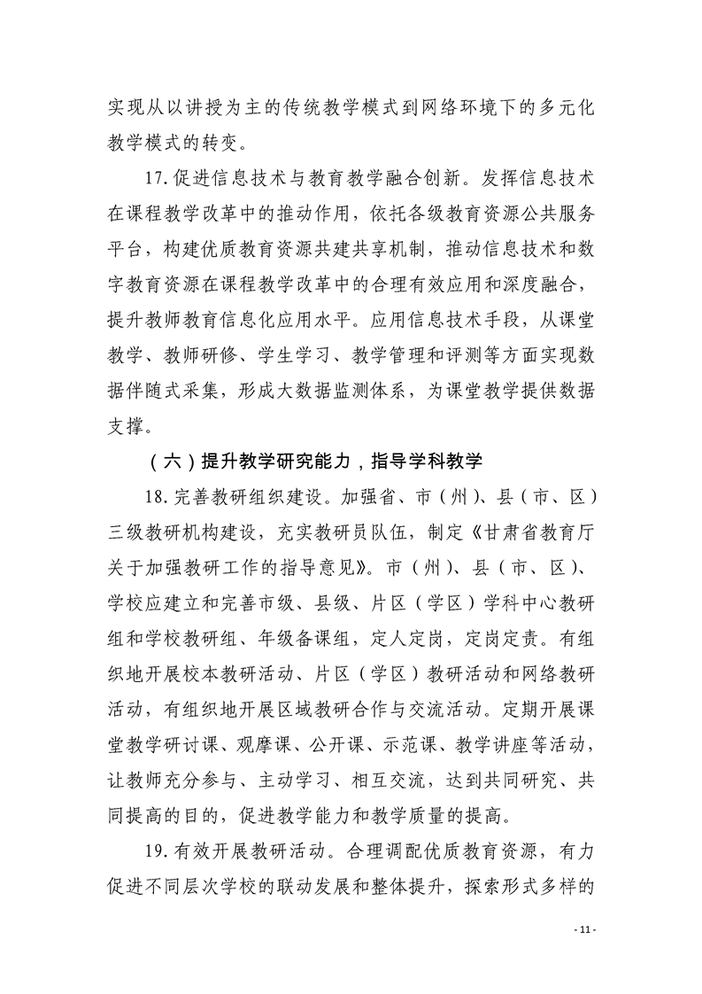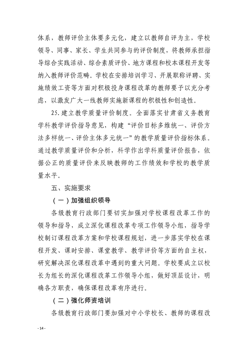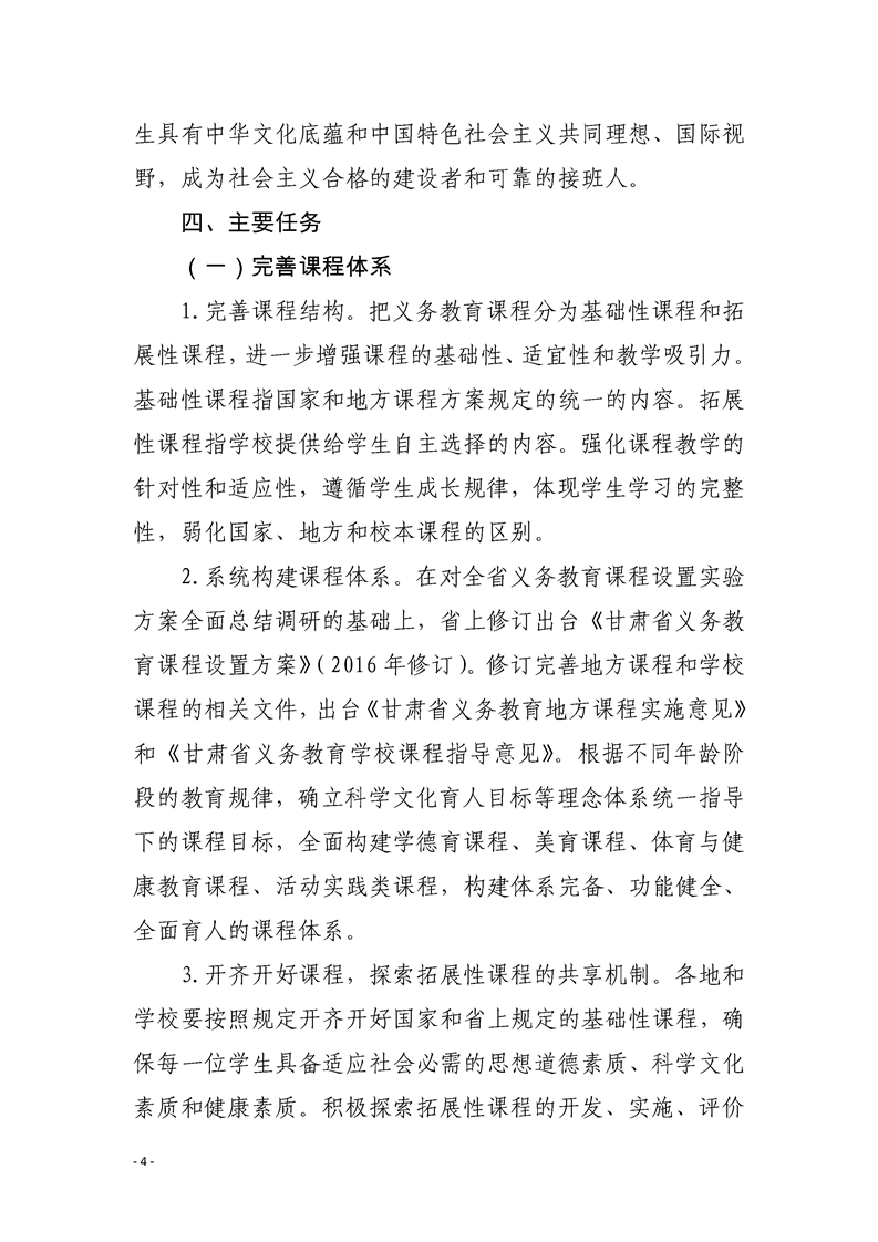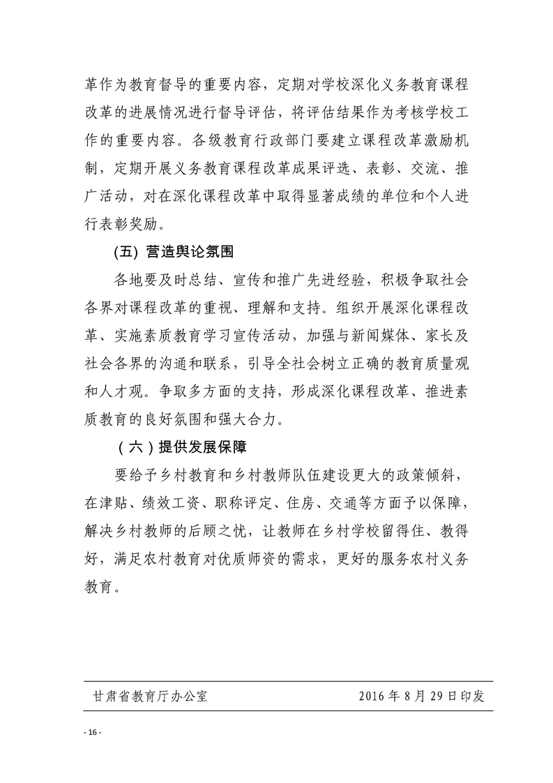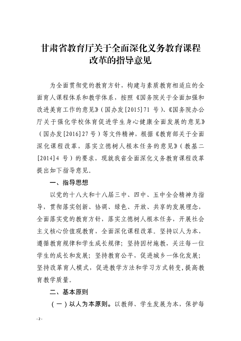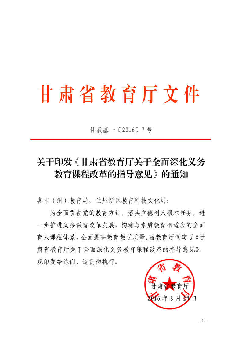 关于印发《甘肃省教育厅关于全面深化义务教育课程改革的指导意见》的通知