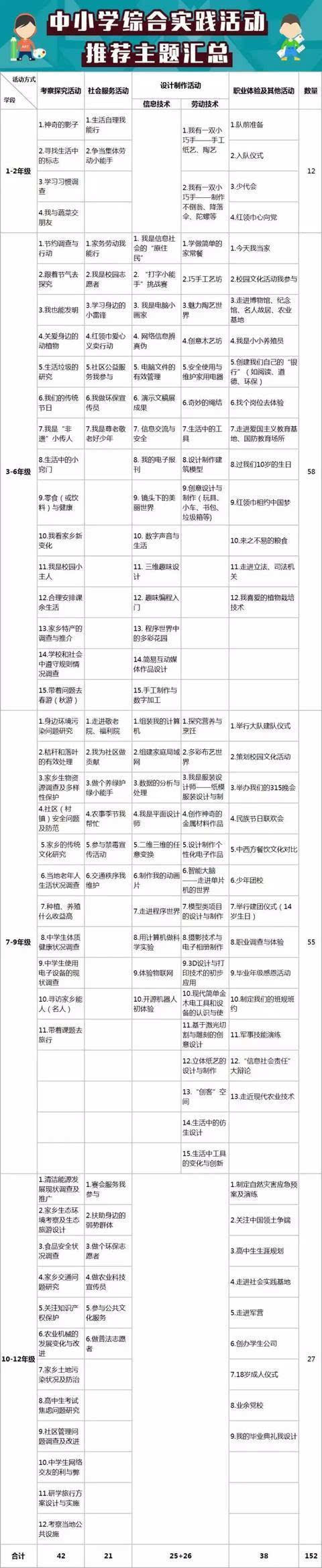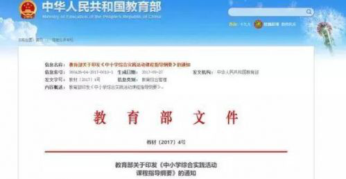 近日,教育部发布《中小学综合实践活动课程指导纲要》,提出中小学综合实践活动课程成中小学必修课程,与学科课程并列设置,从小学到高中,各年级全面实施,所有学生都要学习,都要参加。