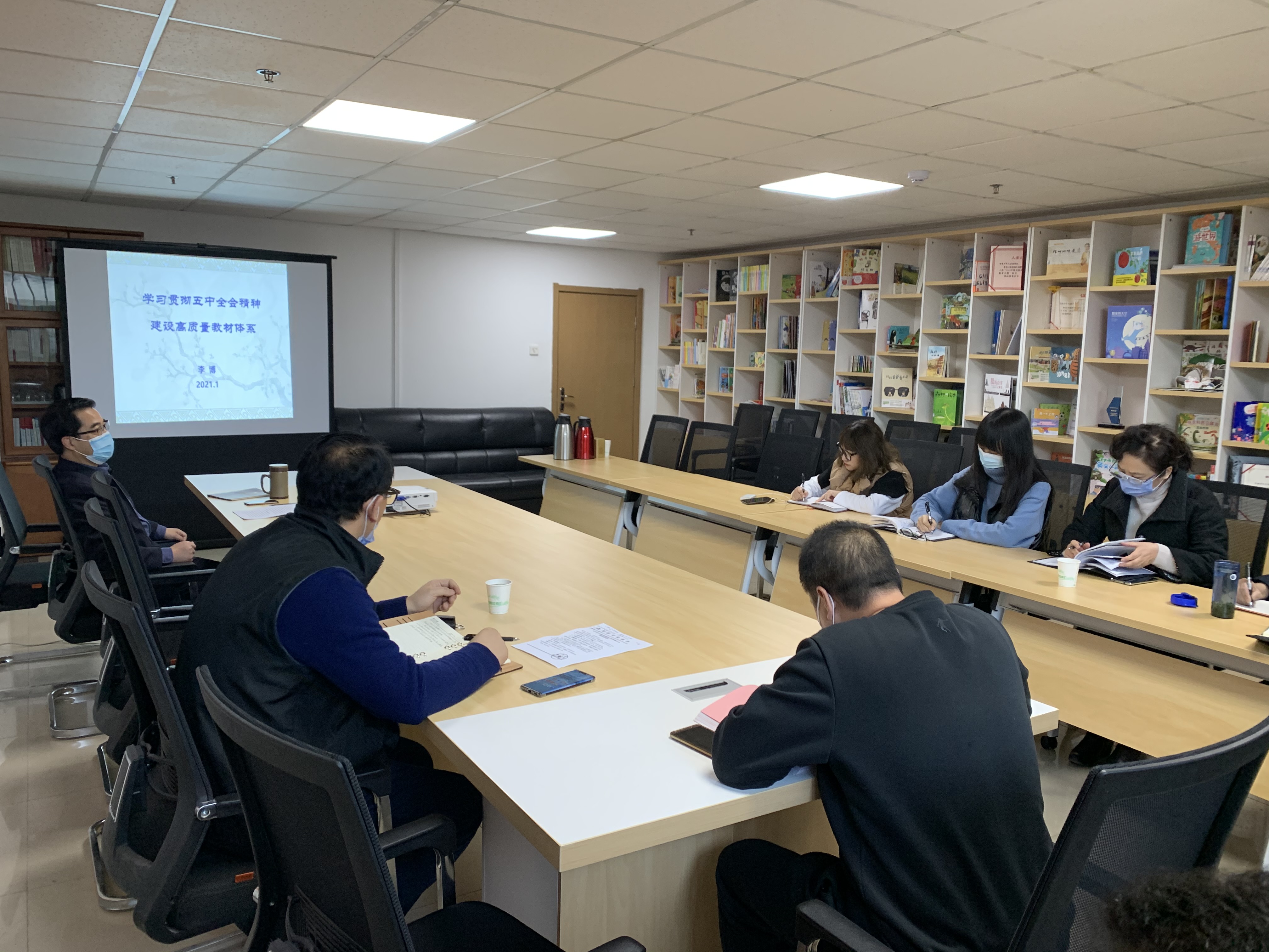 为学习贯彻党的十九届五中全会精神,提高党员干部及职工教材建设能力,1月28日,省课程教材中心主任、党支部书记李博作了题为“学习贯彻五中全会精神,建设高质量教材体系”的专题党课,中心全体党员职工参加了学习活动。
