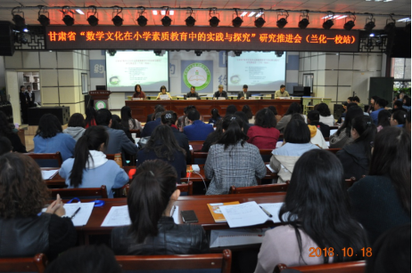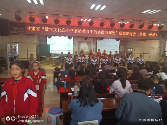 为深化数学文化在小学素质教育中的实践研究,充分发挥数学文化在学生核心素养形成中的着力点和支撑作用,甘肃省教育厅基础教育课程教材中心和教育部西南基础教育课程研究中心,于2018年10月18日在兰化一校召开了“甘肃省数学文化在小学数学素质教育中的实践与探索”研究推进会,来自全省18所实验学校的教师,新疆建设兵团“访名校”国培计划学员,定西临洮县、嘉峪关市、兰州市城关、七里河、西固、安宁、永登、榆中等县区的校长、教师代表和部分数学名师工作室、名校长工作室成员共计240多人参加了会议。临洮县金泽小学、兰化一校做了大会交流发言,重庆市沙坪坝区凤鸣山小学信雪倩老师和兰化一校王萍老师做了精彩的数学文化观摩课。兰化一校的孩子们向与会代表展示了魔方、魔尺、24点游戏等数学文化活动。