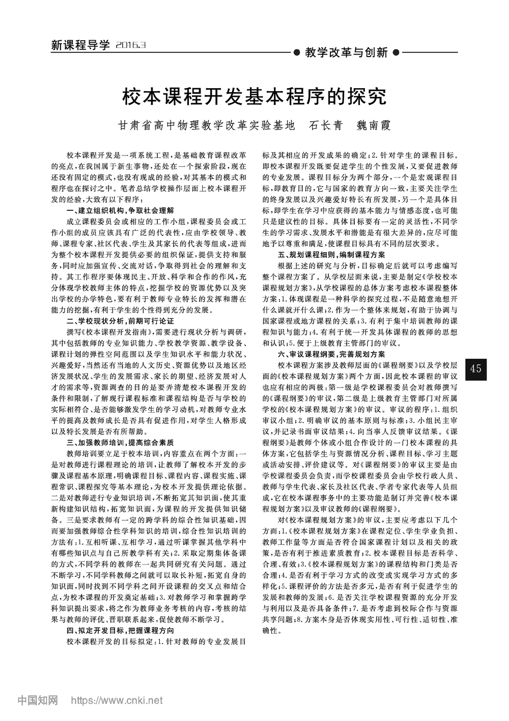义务教育课程方案学校课程转化的学理逻辑与实践进路
