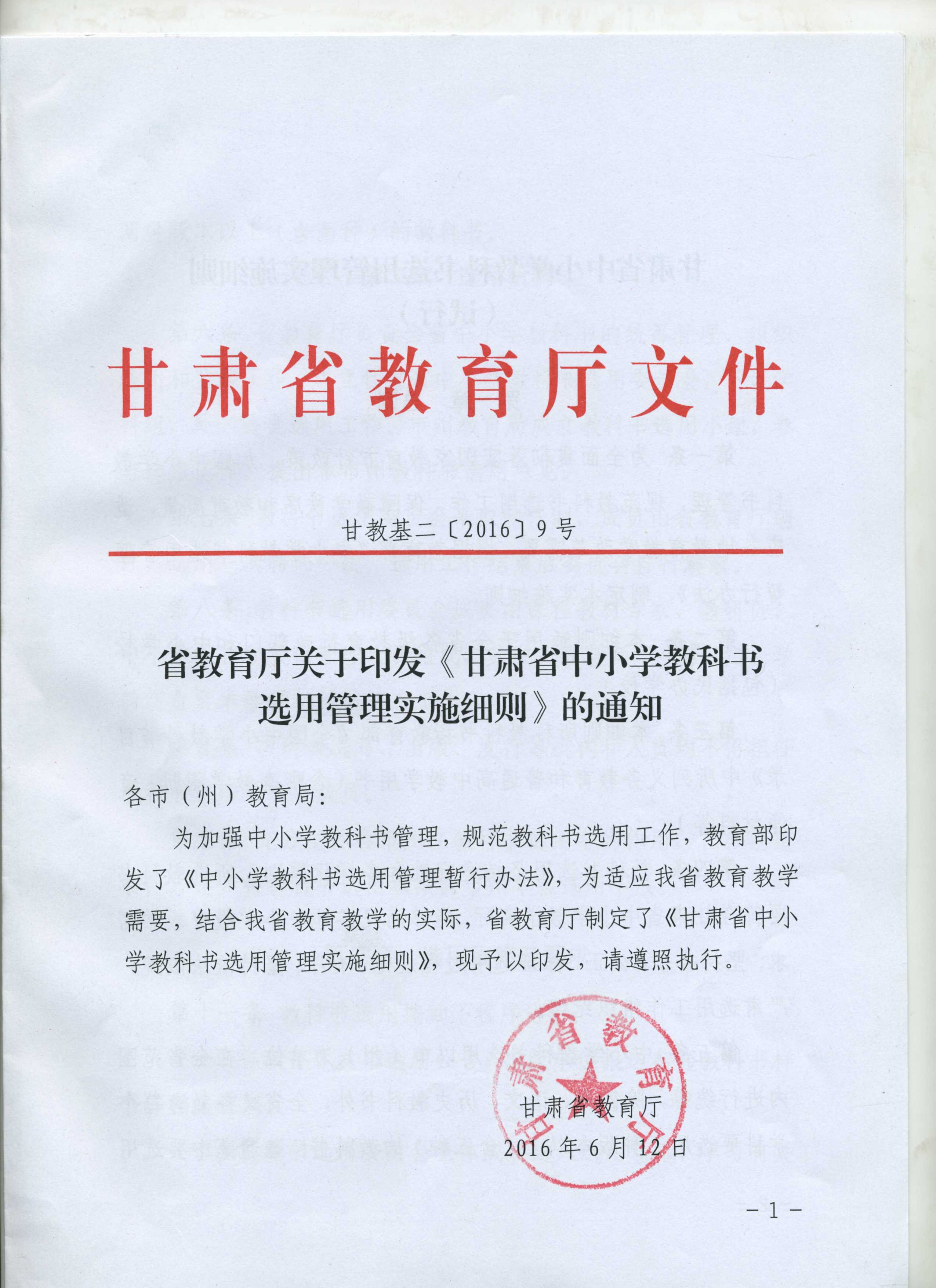 (八)教科书选用委员会向省教育厅报告教科书选用情况,省教育厅审议并在其门户网站公示选用结果,公示期为7天。公示无异议后报教育部备案,并编制《甘肃省中小学教学用书目录》。