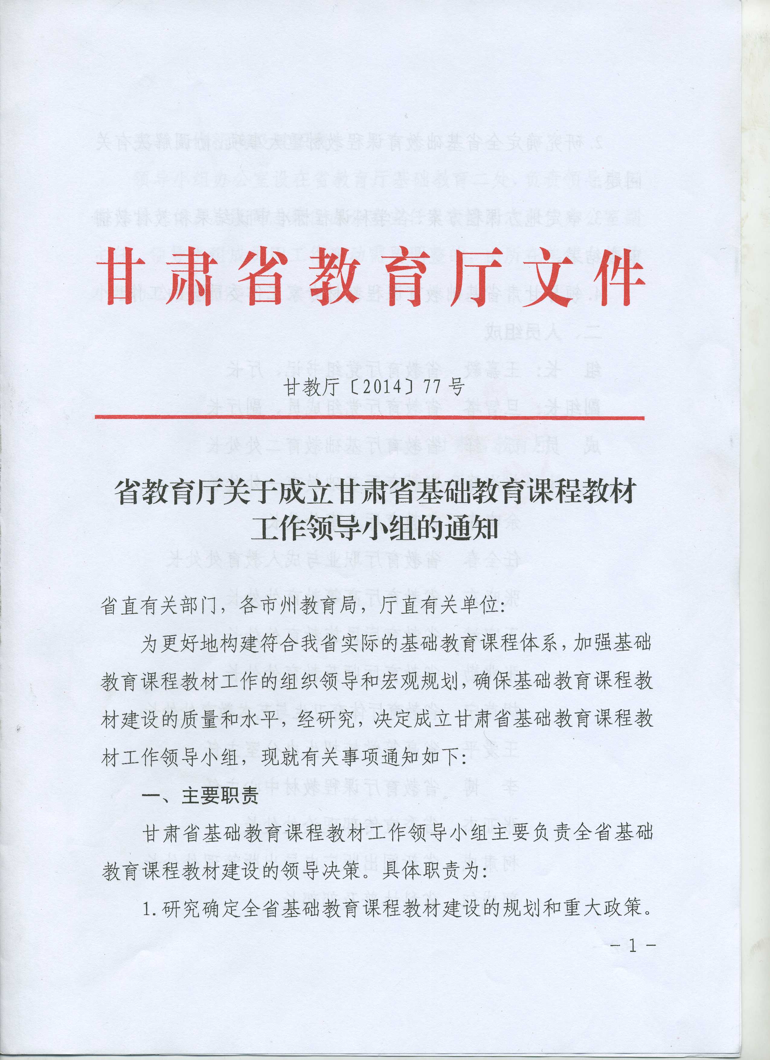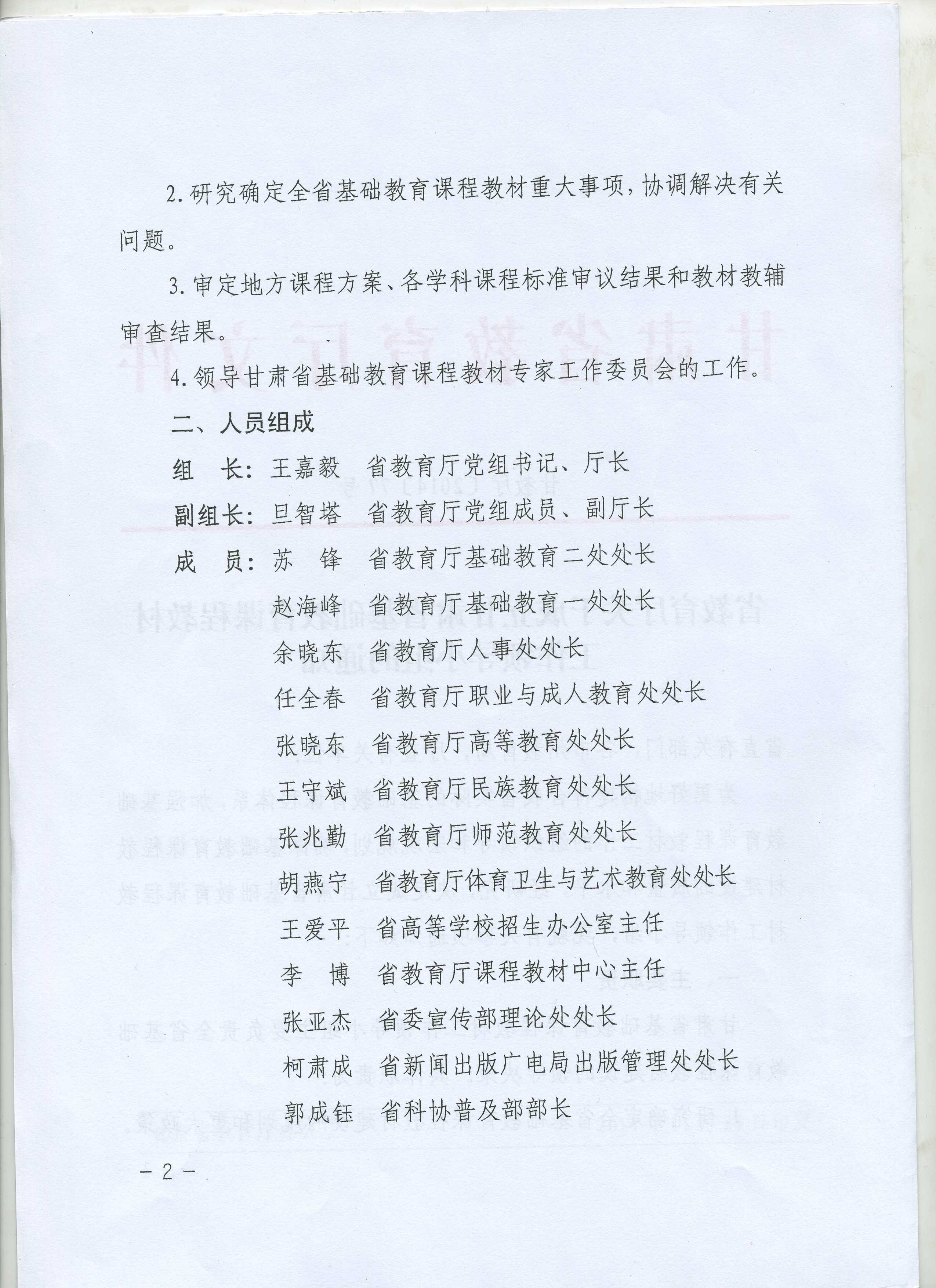 甘肃省人民政府办公厅关于成立甘肃省教材委员会的通知